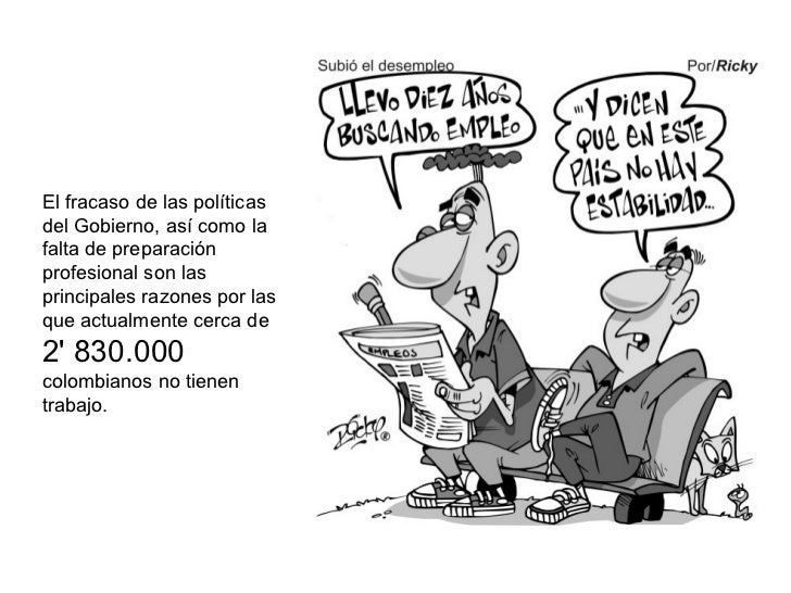 - 2. El fracaso de las polÃticas del Gobierno, asà como la falta de preparación profesional son las principales razones por las que actualmente cerca de 2' 830.000 colombianos no tienen trabajo.